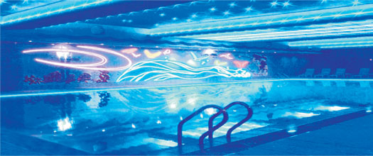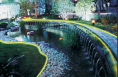 Installing optical fiber under the water can make water body landscapes and other artificial landscapes showing an artistic and colorful sight at night.
