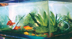 The decorative lighting view of deploying solid core side light fiber optic into aquarium.